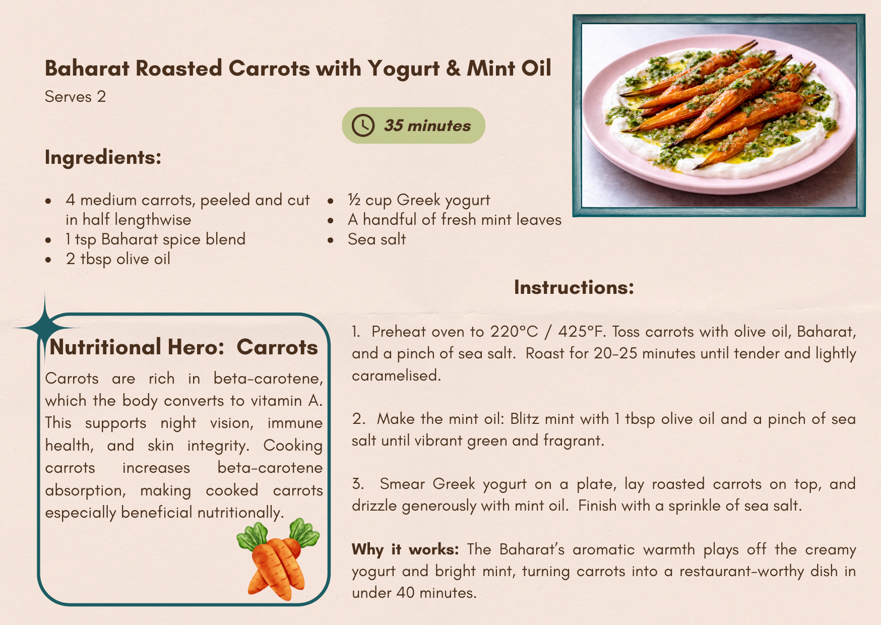 Baharat Roasted Carrots with Yogurt & Mint Oil