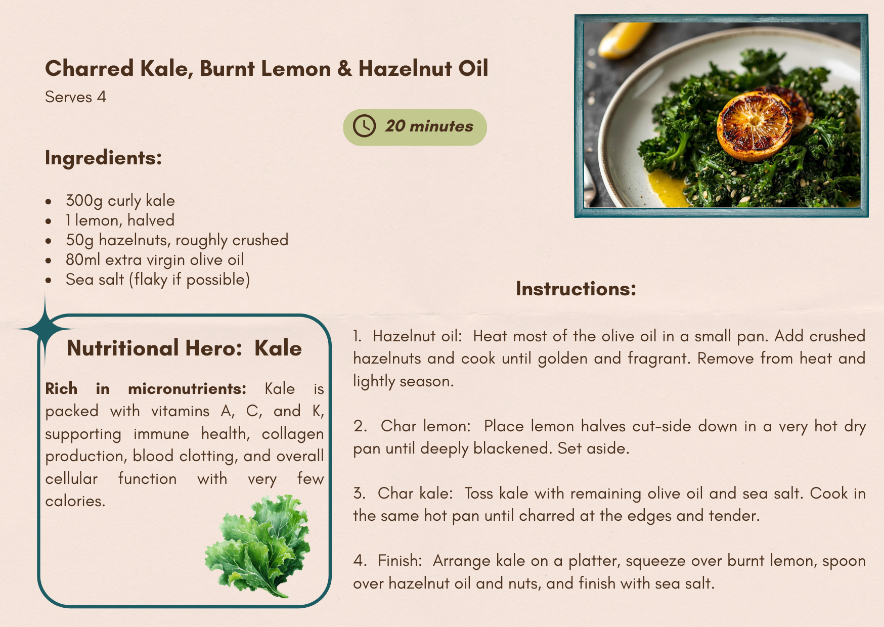 Charred Kale, Burnt Lemon & Hazelnut Oil